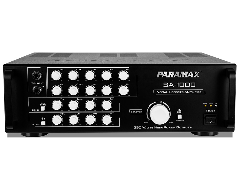 Ampli PARAMAX SA-1000 được thiết kế tối ưu dành cho các phòng karaoke gia đình có kích thước vừa phải, hỗ trợ giọng hát thêm phần dày dặn ấm áp, tăng cường nội lực cho người ca giúp mang lại cảm giác hát thoải mái và khỏe khoắn hơn bất kỳ sản phẩm nào cùng phân khúc trên thị trường. Bên cạnh đó, SA-1000 được thiết kế mạch hỗ trợ tăng phần âm bass và treble (nút EQ) là tính năng hữu dụng, phù hợp các khách hàng có nhu cầu nghe các bản nhạc sôi động (EDM, Remix) đang được yêu thích hiện nay.